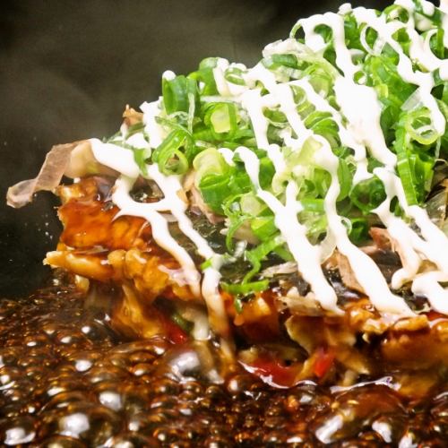 【お好み焼き】鉄板でジュージュー焼き上げるお好み焼き!!食べ放題は1830円~ご用意しております。豚玉・牛玉・生姜玉・エビ玉・タコ玉・イカ玉・ツナ玉・梅玉・アサリ玉・のり玉・ねぎ玉・チーズ玉・納豆玉・キムチ玉・カレー玉・もち玉・MIX玉・海鮮玉・火炎玉・ガーリック玉・トマト玉 など豊富に取り揃えております。